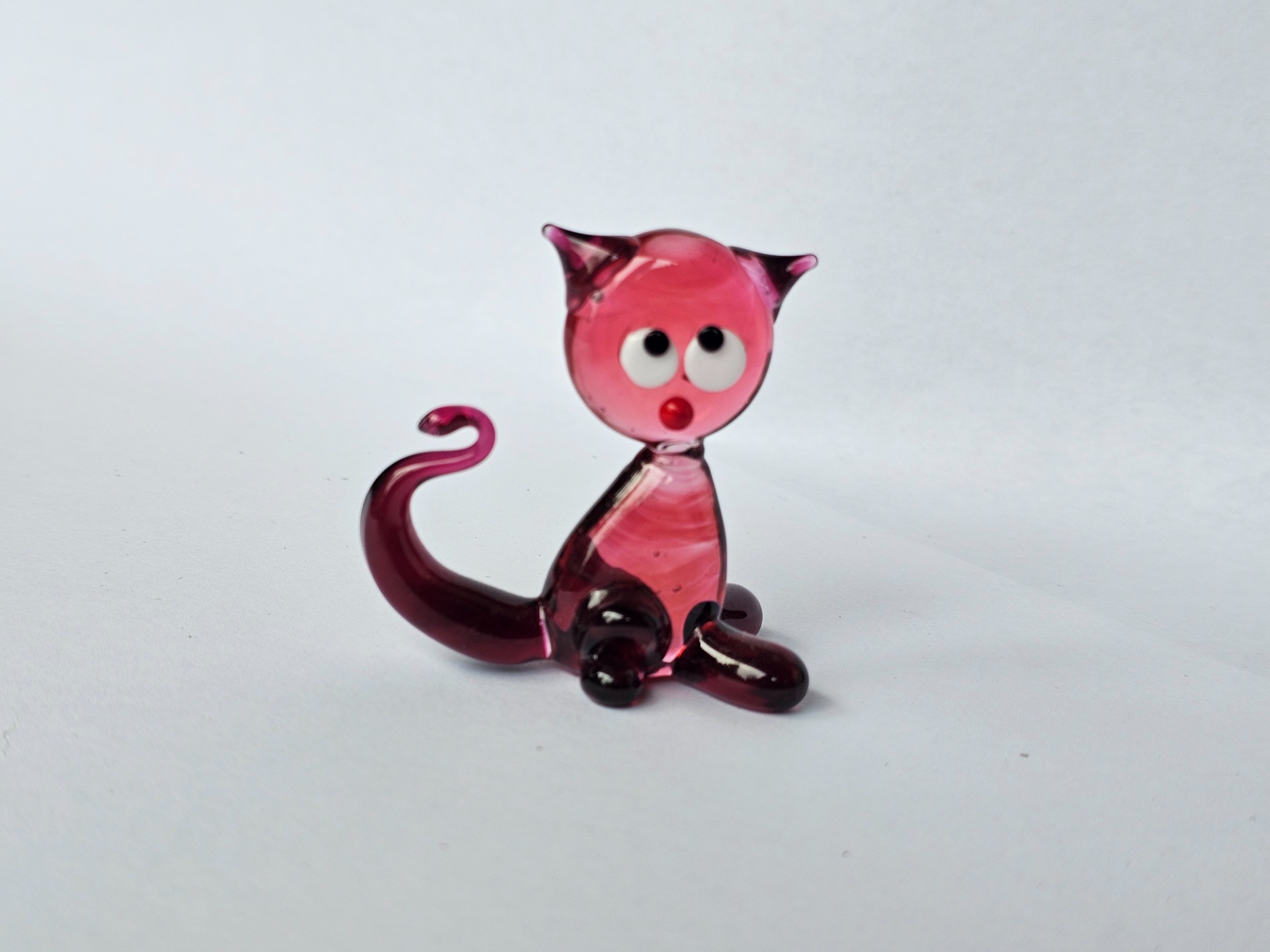 Ručně vyrobená skleněná figurka kočky o velikosti 5 - 6 cm. Barva a tvar hlavy (může být kulatá nebo placatá) se upřesní v objednávce.
